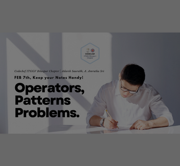 Being a part of Codechef ITGGV Bilaspur Chapter, I and my Co-Speaker Adarsh Saurabh derived a session on operators, and Pattern Problems to the fresh geeks.